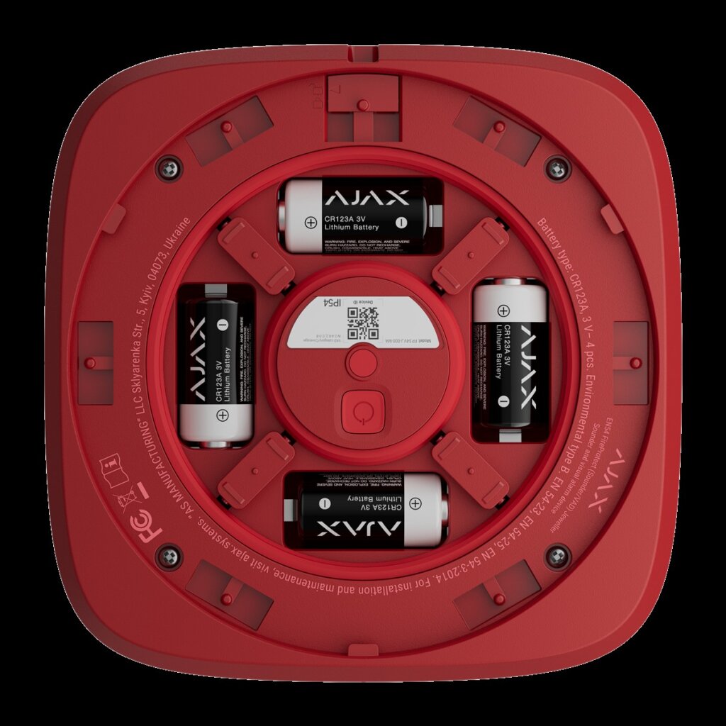 Der Ajax EN54 FireProtect (Sounder/VAD) rot ist ein kabelloses, zertifiziertes Kombinationsgerät zur akustischen und visuellen Brandalarmierung für Funk-Brandwarnsysteme nach EN 54. Mit seiner auffälligen roten Gehäusefarbe signalisiert der Melder bereits im Ruhezustand deutlich seine sicherheitsrelevante Funktion – ideal für Fluchtwege, Industrieanlagen, öffentliche Gebäude, Tiefgaragen oder Produktionsbereiche.