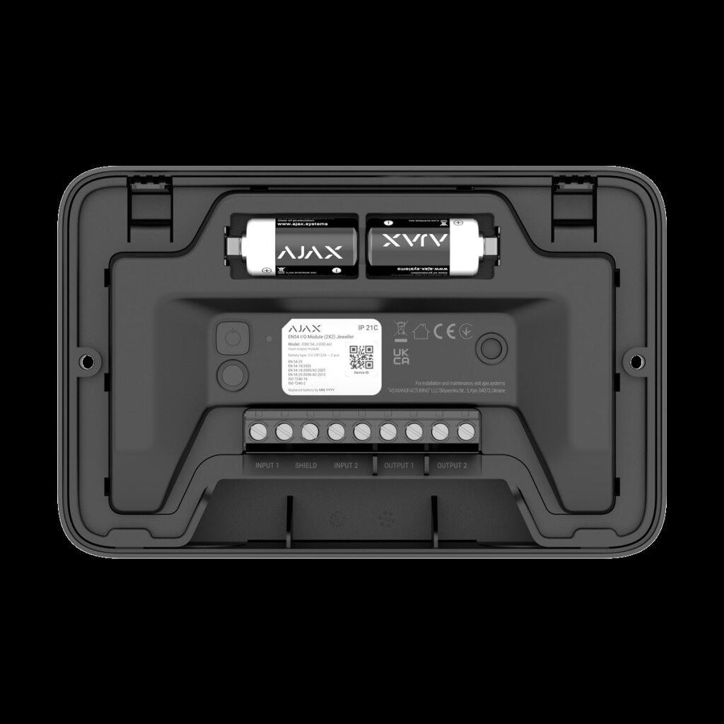 Das EN54 I/O Module (2X2) nutzt das sichere Jeweller Funkprotokoll mit einer Reichweite von bis zu 1.300 m im Freifeld zur drahtlosen Anbindung an die Ajax Fire Hub Jeweller Zentraleinheit. Es ist adressierbar, fernkonfigurierbar und vollüberwachbar über die Ajax PRO Plattform.