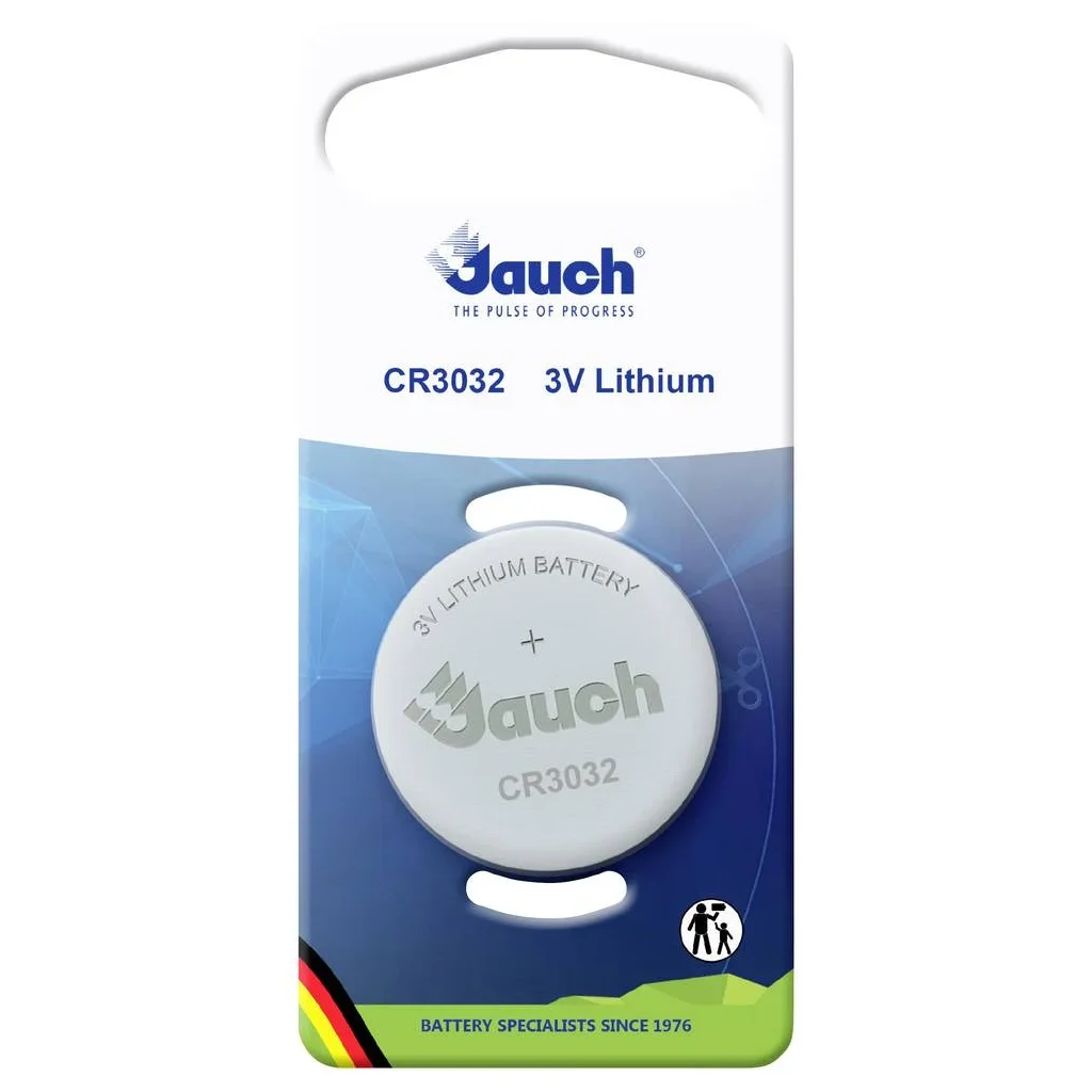 Die Jauch Quartz CR3032 ist eine hochwertige Lithium-Knopfzelle mit 3 V Nennspannung und einer Kapazität von 600 mAh. Sie überzeugt durch eine geringe Selbstentladung, ein sehr gutes Temperaturverhalten und eine lange Lagerfähigkeit. Mit ihrem kompakten Format (Ø 30 mm x 3,2 mm) eignet sie sich ideal für den Einsatz in Uhren, Taschenrechnern, Autoschlüsseln, medizinischen Geräten, Spielzeug und als Memory-Backup.