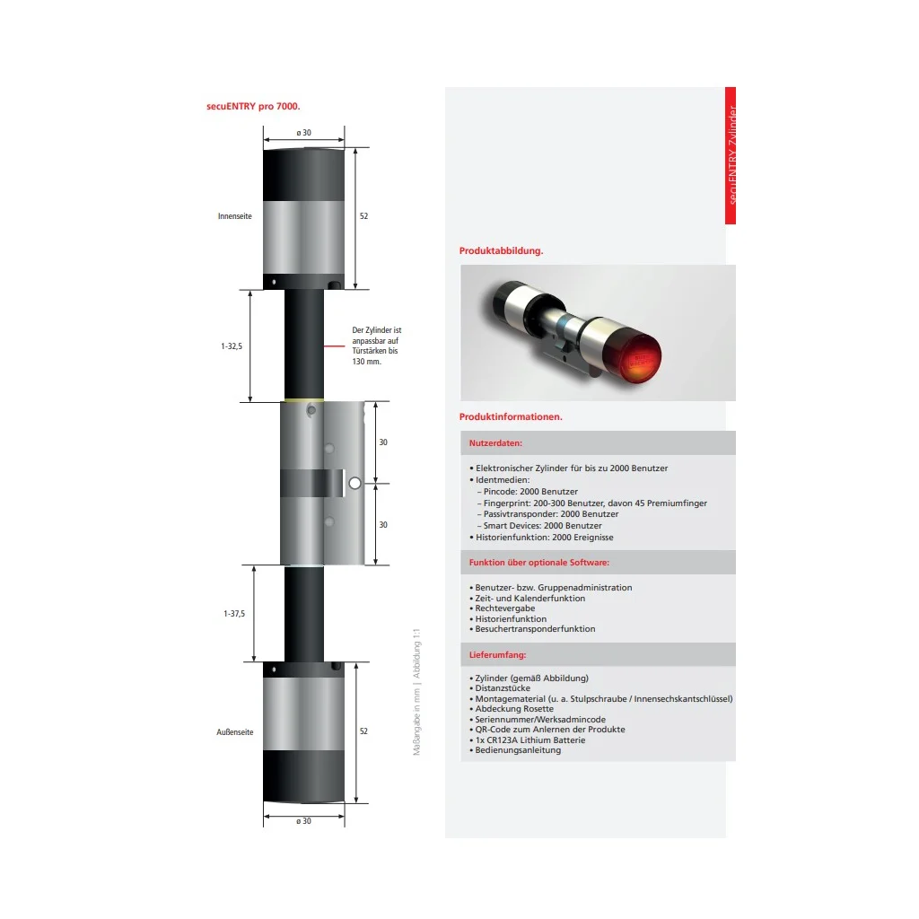 secuENTRY pro 7000 - Elektronisk dørcylinder til kommerciel og privat brug med fem åbningsvarianter