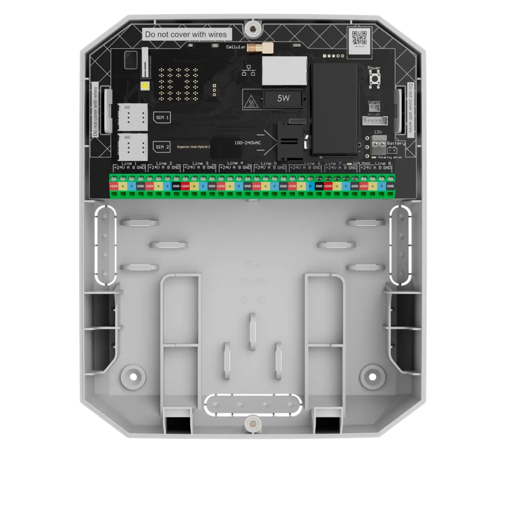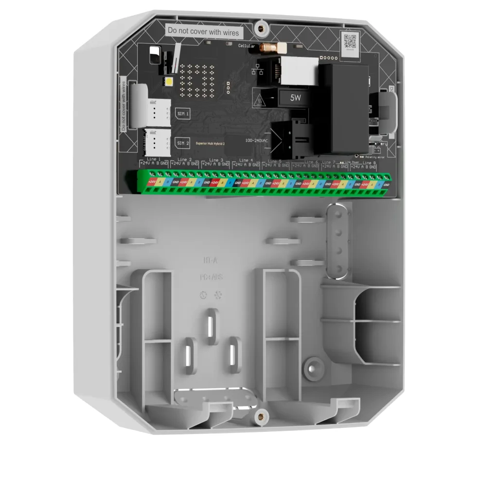 Hub Hybrid er en nyhed blandt professionelle sikkerhedssystemer. Det er det første Ajax-kontrolcenter til Jeweller-enheder og den helt nye Fibra-produktlinje. Kablede og trådløse teknologier kombineres for at skabe kompleks beskyttelse af genstande af enhver størrelse, herunder forhindringer af stål eller beton. Sikkerheden forbedres med informative meddelelser, fotobekræftelse af alarmer, systemkontrol i realtid i appen og automatiseringsscenarier.