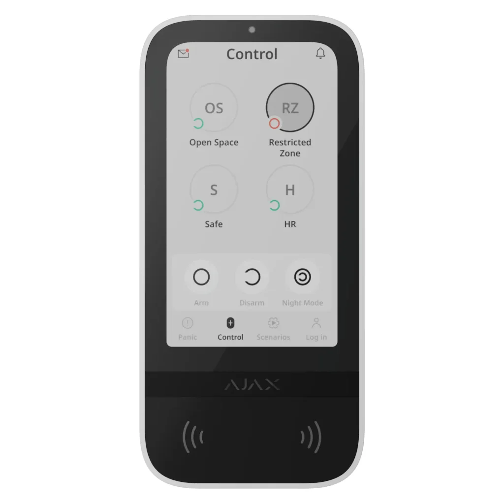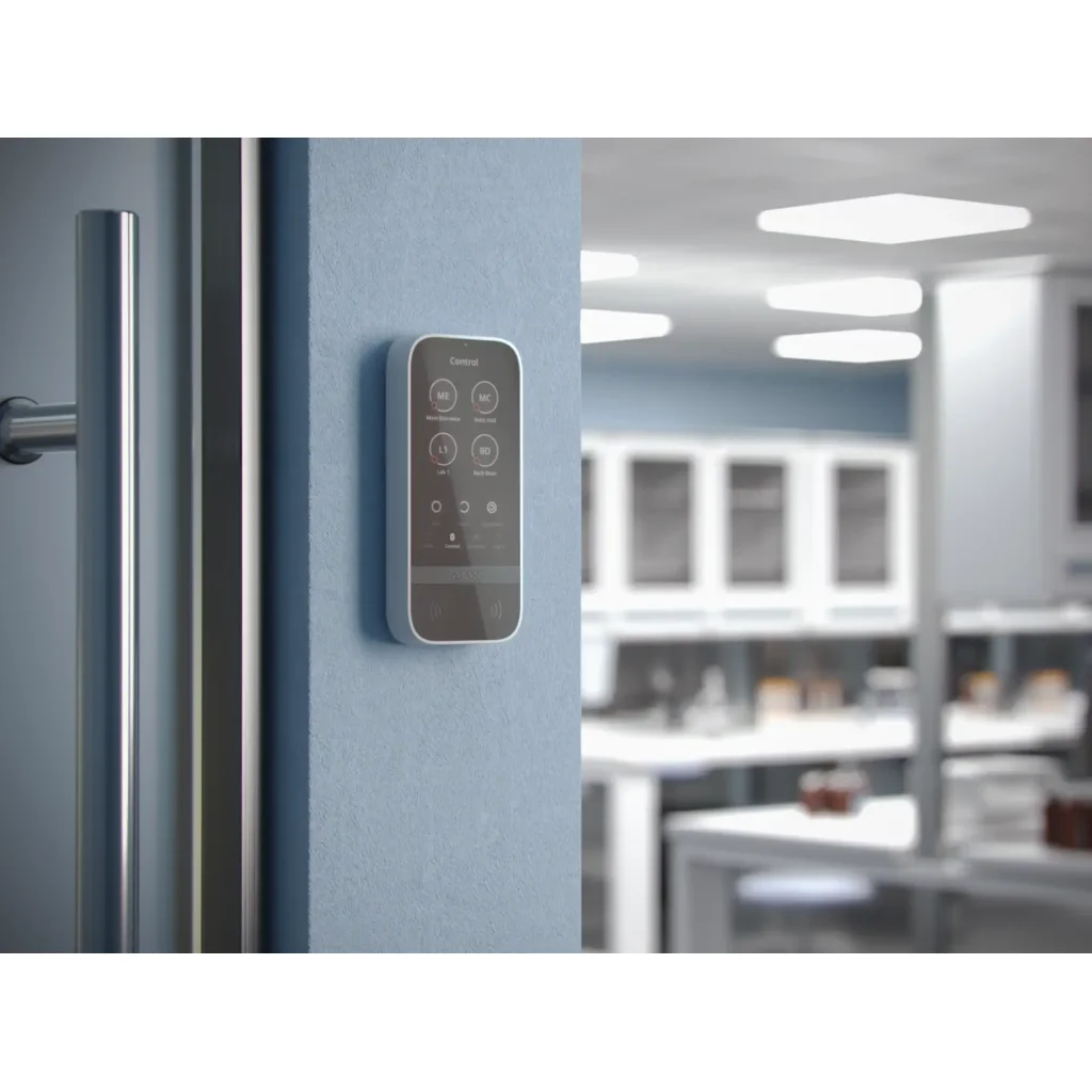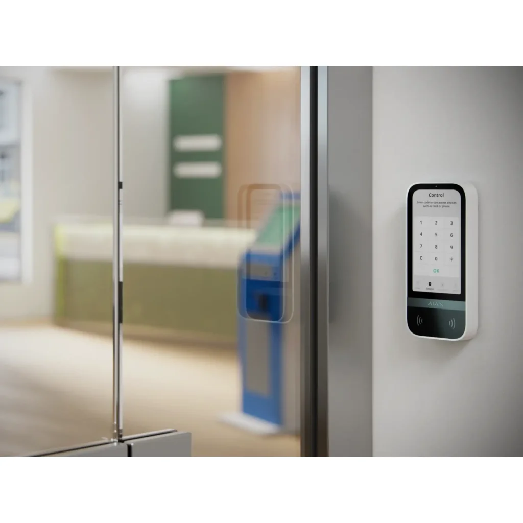 KeyPad TouchScreen er et trådløst kontrolpanel med berøringsskærm, der gør det muligt at styre Ajax' sikkerheds- og smart home-enheder. Med sin intuitive, flersprogede brugergrænseflade, der ligner Ajax-appen, tilbyder denne enhed en brugervenlig løsning til styring af dit hjem eller kontor. Det store display, DESFire- og BLE-teknologierne samt muligheden for at indtaste en kode giver en sikker og effektiv brugeroplevelse.