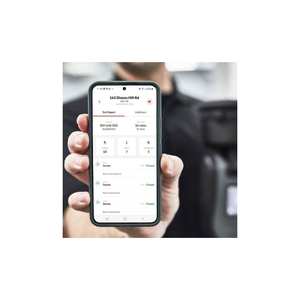 - Alt-i-en-testløsning: Test røg- og varmedetektorer i én enhed