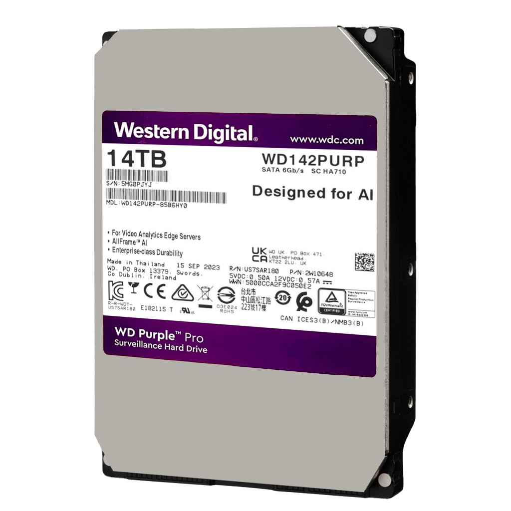 Model WD10PURX fra producenten Western Digital. Specielt udviklet og fremstillet til lagring i videoovervågningssystemer med op til 32 high definition-kameraer og 8 harddiske. De garanterer kontinuerlig optimal drift 24 timer i døgnet, 7 dage om ugen, selv ved høje temperaturer.